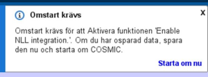 När NLL har aktiverats så kommer aktiva användare i Cosmic få ett meddelande på sin skärm där de ombes att starta om klienten för att komma åt NLL.